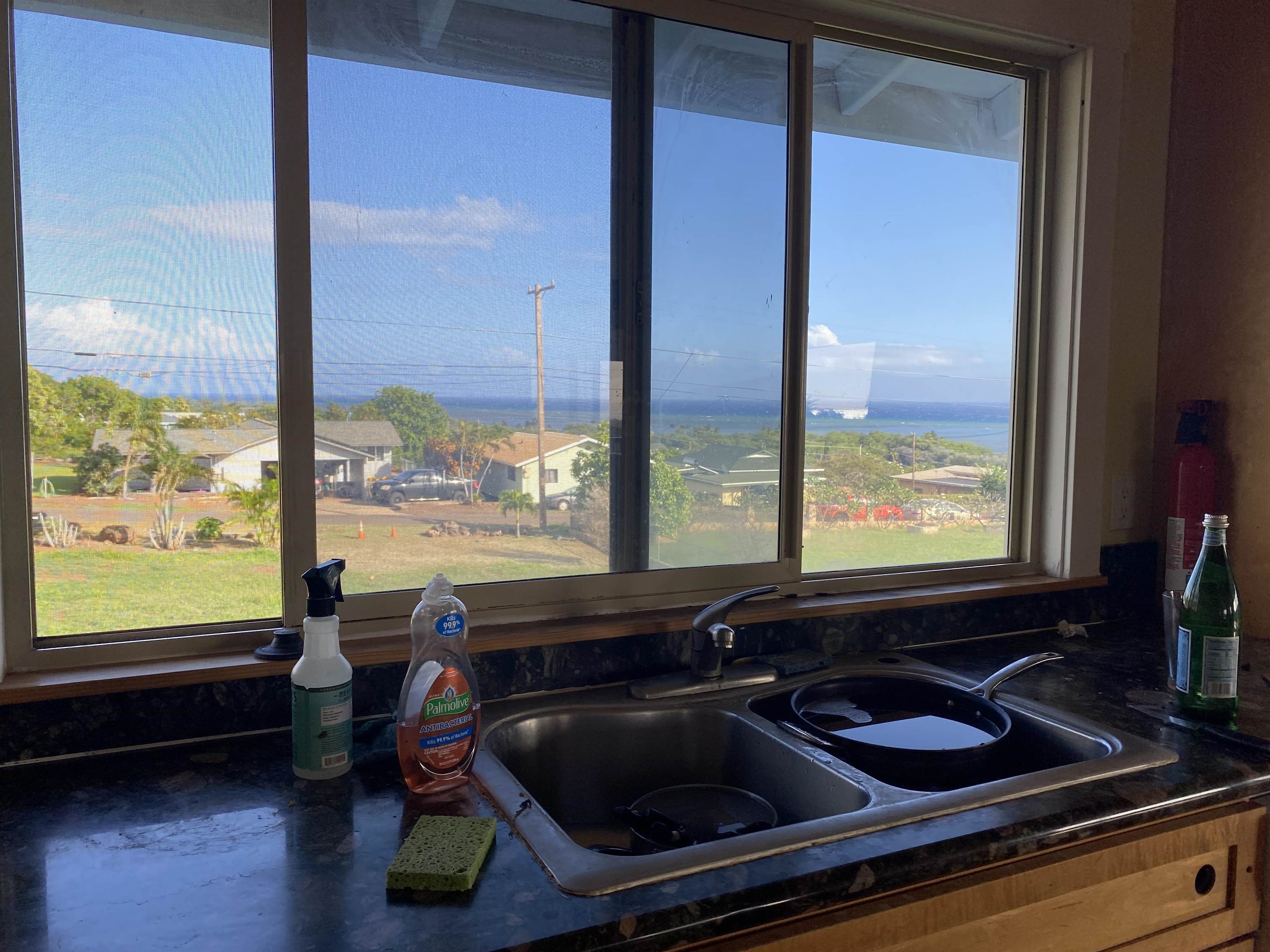 Wonderful opportunity to own a 3 Bedroom 2 Bath home on over a half acre of land on Molokai. There is a 400 s/f covered deck facing the ocean and 484 s/f of covered deck facing the Mountains. Below the house is 2400 s/f of great use. Carport, play area, workshop or what ever you fancy. In the corner is a nice outside shower for use after working in the yard. Great lot for gardening or fruit trees. Up stairs is an over size entrance, large great room, high ceilings, nice size kitchen area with bar top and all your appliances. The master has its own walk in closet and tiled bath with tub/Shower and sliding doors to the mountain side of the house. Two smaller bedrooms, one with sliding doors and the second bath has the washer and dryer. Ceiling fans in the bedrooms. House is located only about 2 miles from the main town of Kaunakakai. Tenant occupied till 2/26. Built in 2009 and has solar panels.