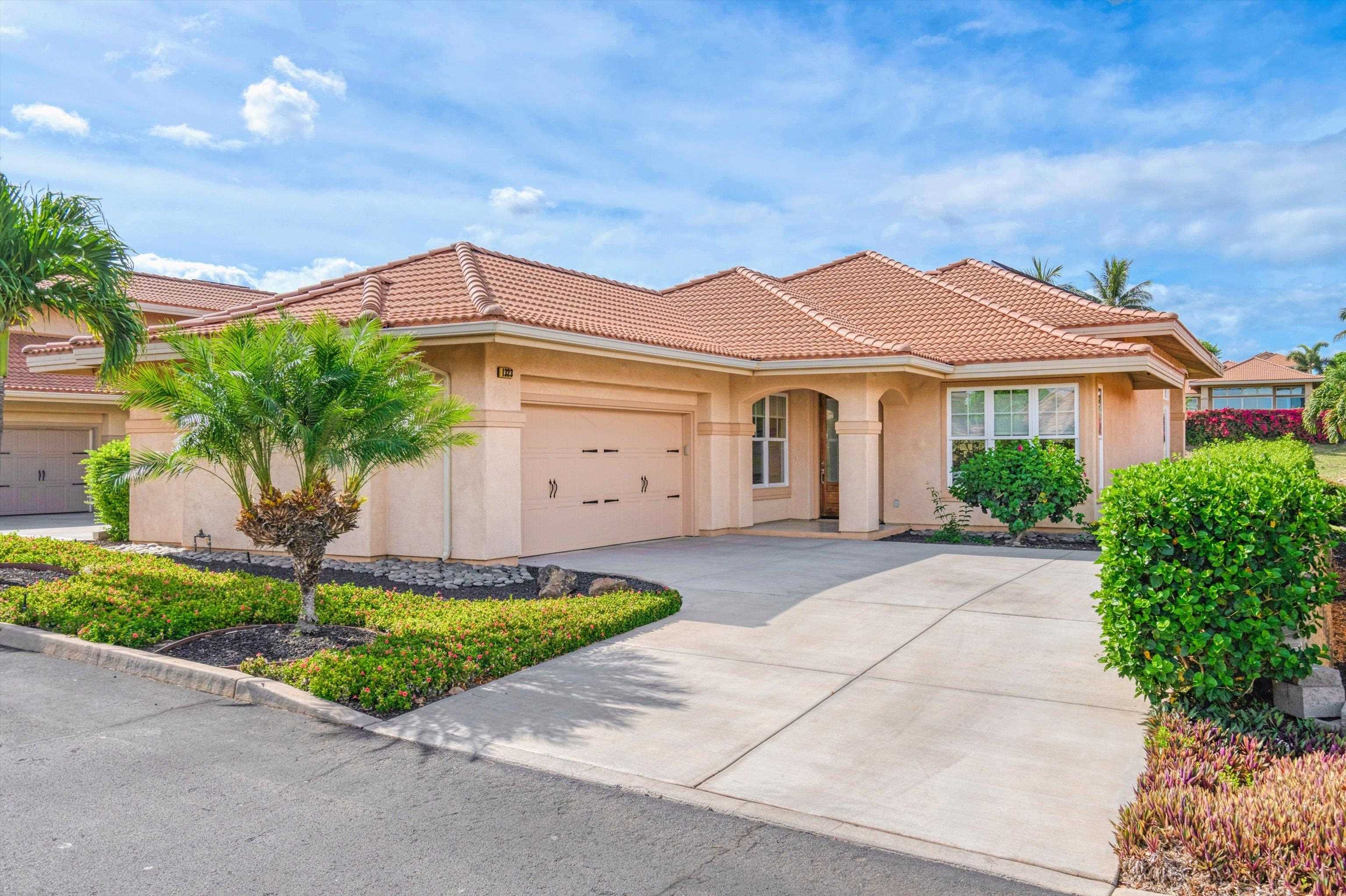 Also listed as a single family MLS #407655. This beautifully appointed single-level residence in the exclusive Hokulani Golf Villas—South Maui’s top gated community nestled alongside the Maui Nui Golf Course and a short stroll from Maui Brewing—offers an enviable island lifestyle. Boasting stunning mountain vistas of Haleakala, this home blends contemporary elegance with casual island charm. The adaptable floor plan includes two bedrooms, two baths, and a dedicated office/study space ready to serve as a flexible guest room if desired. Situated just minutes from Maui's pristine beaches, dining, and shopping, unit 1323 enjoys a unique perch above the gulch, providing exceptional privacy from neighboring homes. Inside, soaring 12-foot ceilings amplify the open atmosphere, while the chef’s kitchen shines with premium appliances, a gas cooktop, custom countertops, and a generously sized island perfect for entertaining. Italian tile flooring flows seamlessly into plush custom carpets in the bedrooms, all accented by serene coastal hues throughout. Eco-conscious features include a Rinnai tankless water heater, high-efficiency appliances, 20 solar panels, and a Tesla Powerwall system for energy independence. The oversized two-car garage boasts durable epoxy flooring. The home radiates relaxed beach vibes with a sophisticated edge. Step onto the covered lanai surrounded by lush tropical landscaping—ideal for enjoying your morning coffee or evening sunsets. Spanning 40 acres, Hokulani Golf Villas offers residents access to an infinity pool, hot tub, and a clubhouse with some of South Maui’s most breathtaking ocean and sunset panoramas. Meticulously maintained and move-in ready, this residence is more than a home—it’s a true Hawaiian lifestyle. Contact your preferred Realtor to arrange an exclusive showing. This is a CPR Residential property. Maintenance fee includes exterior maintenance, landscaping, common areas, clubhouse, and amenities.