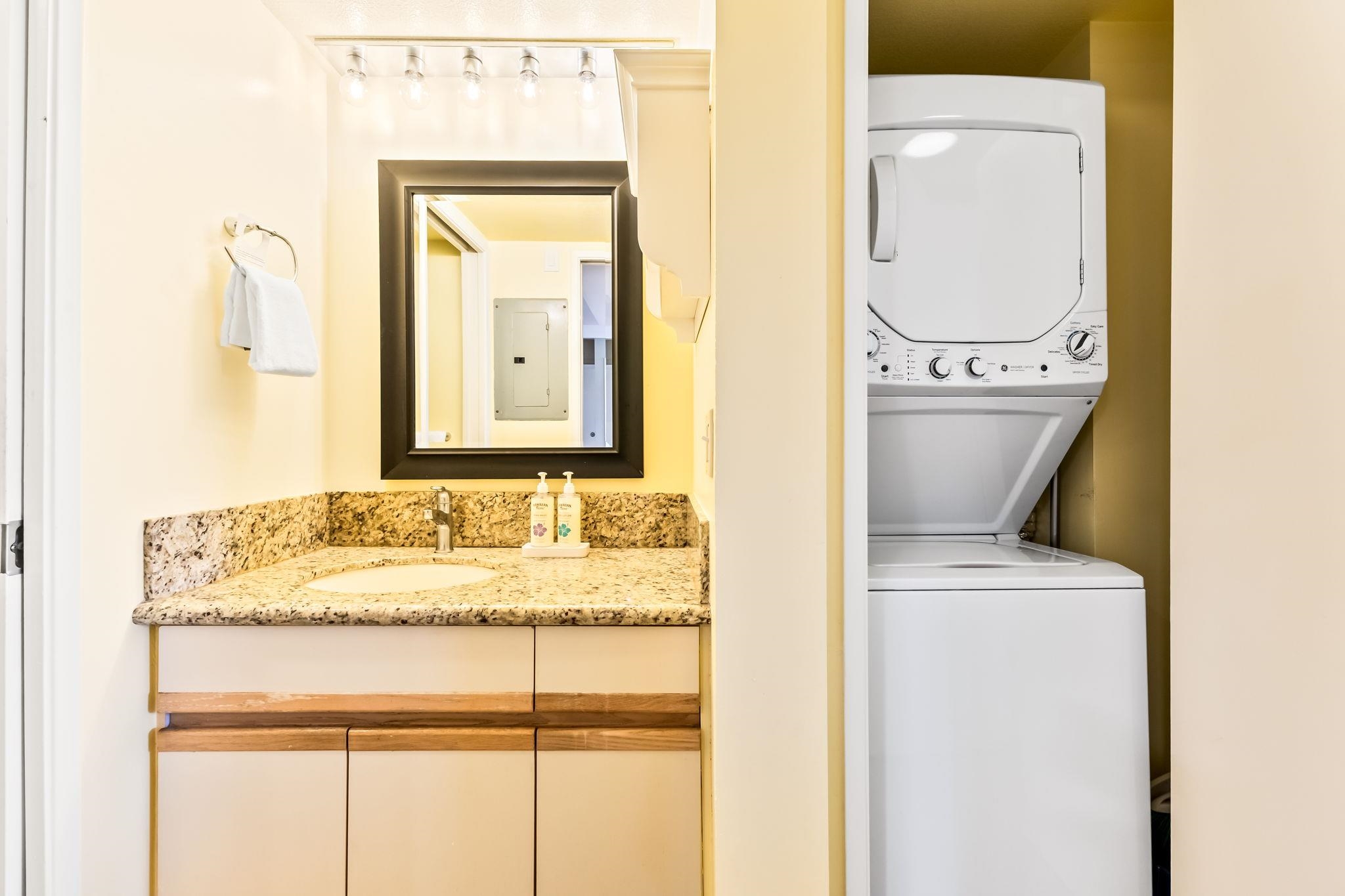 Welcome to Maui Banyan - where island elegance meets effortless living just steps from the golden sands of Kamaole Beach Park II. This beautifully upgraded top-floor corner unit offers breathtaking ocean and mountain views, along with a rare and flexible 2 bed / 2 bath lock-off floor plan (1 BR/1 BA+ studio), allowing for multiple uses: vacation rental, personal retreat, or extended stays with guests. Thoughtfully updated, this 900 sq. ft. residence features cool split A/C systems (2024) in both units, an open-concept kitchen with granite countertops, remodeled bathrooms with stylish tile showers, and durable tile and laminate flooring throughout. The corner location allows for extra privacy and a larger covered lanai - the perfect place to sip morning coffee or toast the sunset. Both units are equipped with smart, remotely managed keyless entry locks, and the home is offered fully furnished with brand-new furniture, mattresses, TVs, and appliances - truly turnkey. Maui Banyan is a hotel-zoned, vacation-rentable, and pet-friendly complex, offering resort-style amenities: two pools, jet spas, tennis courts, BBQ areas, and beautifully maintained tropical grounds. Stroll to nearby shops, cafes, and restaurants, or explore the rest of the island's world-famous beaches, golf courses, and adventures - all just a short drive away. Whether you're looking for an investment, a second home, or your own slice of paradise, this stunning unit is your invitation to experience the best of Maui living.