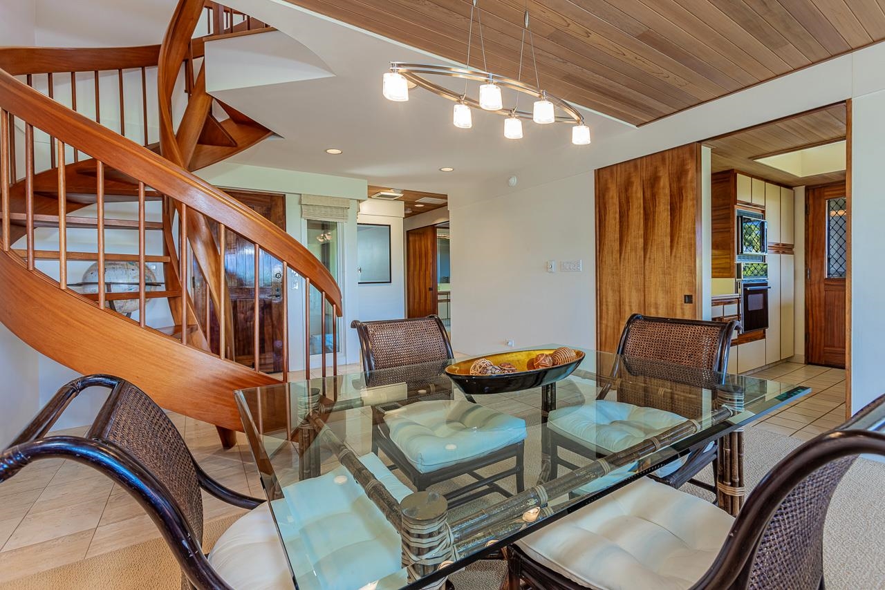 From the moment you enter Wailea Point 1904, the world seems to pause. Before you lies a sea of liquid blue: waves shimmering under the sun, clouds drifting like silk across the West Maui Mountains, and the scent of salt carried on the breeze. It’s not just a view; it’s an experience that reaches into your senses and holds you there, suspended between sea and sky. Polished marble floors guide you through a space defined by craftsmanship and grace. The great room, with soaring 20-foot ceilings and natural clear cedar soffits illuminated by art lighting, opens wide to a 24-foot mitered glass bay window that frames Wailea Point’s lush gardens and the boundless Pacific beyond. Here, light is architecture, and every surface, from the richly grained Hawaiian Koa doors to the glass walls that dissolve the boundary between indoors and out, invites calm and connection. Step through sliding glass doors onto the expansive 390-square-foot wraparound lanai, where the rustle of palm fronds and the fragrance of plumeria accompany every meal. This is the essence of island living: dining alfresco, surrounded by nature’s color and sound. A built-in BBQ and ocean-view kitchen make entertaining effortless, with glass-on-glass corner windows that bring the gardens and horizon into every culinary moment. The primary suite, a sanctuary of quiet refinement, opens to its own private lanai. Sunlight pours through three skylights into the en-suite bath, complete with dual vanities, a radius-tiled shower, and thoughtful design that feels both indulgent and intimate. The guest suite offers its own sense of retreat, with garden vistas that soothe the spirit. Ascend the sculptural steamed-and-bent mahogany spiral staircase to a lofted third bedroom, an airy hideaway with a walk-in closet, perfect for guests or a creative escape. Set across 28 acres of oceanfront paradise, Wailea Point is a world unto itself bordered by two of Maui’s finest beaches and adjacent to the Four Seasons and Fairmont Kea Lani Resorts. A gated enclave offering unmatched privacy and prestige. Enjoy two resort-quality pool pavilions for hosting community gatherings as well as the owners' private use, a fully equipped gym, lighted tennis and pickleball courts, a cold plunge, multiple BBQ areas, and 24-hour roving security. Fine dining & shopping, world-class golf & tennis, plus hiking & diving are all nearby! Wailea Point is Maui’s Finest Condominium and a Legacy Property!